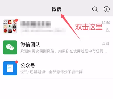 方法三、如过开启了隐藏豆子图标功能,那么在微信分身的首页双击顶部微信字样。