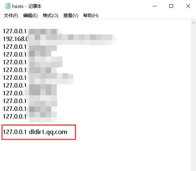 4、然后打开host,添加 127.0.0.1 dldir1.qq.com