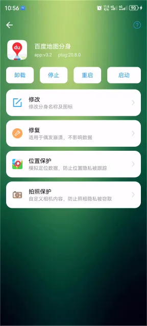 4、返回分身管理页面,查看定位信息,点击重启或启动打开分身