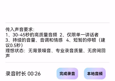 2、录音时长不能短于20秒,不能超过三分钟