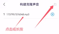 5、音频录制成功,当前页面会显示已录制音频列表,右上角可批量编辑,点击单条试听该音频,长按单条可修改名称、删除音频、使用音频、播放音频。