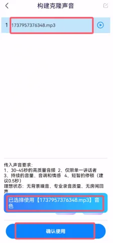 6、或者选中之后,点击底部“确认使用”按钮,表示已选择该音色。