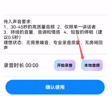 7. 选择本地音频:在构建克隆声音页面中,点击底部的“本地音频”选项。
