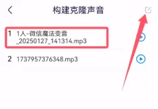 9. 下一步:单机该音频后,点击右下角的“下一步”按钮。系统会自动生成音色文件,并回到构建克隆声音页面。