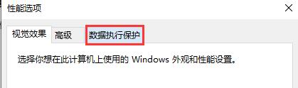 1、在性能选项中,选择“数据执行保护”;