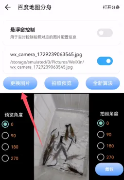 3、如果出现闪退或未替换照片的情况,右侧全新算法,切换一下,角度不对时,拍照角度和预览角度选择一下。