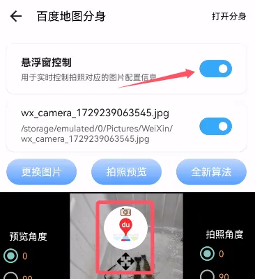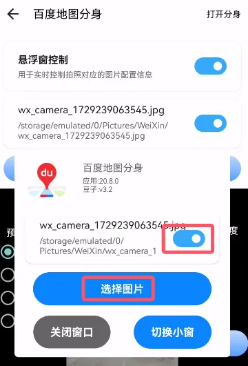 5、特殊情况,登录需要人脸识别、真实拍照、扫描识别等,开启悬浮窗功能,通过悬浮窗替换图片或功能开关。
