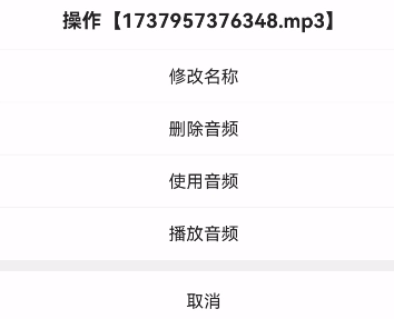 9. 批量编辑:右上角可批量编辑音频,点击单条音频可以试听、修改名称、删除音频、使用音频或播放音频。
