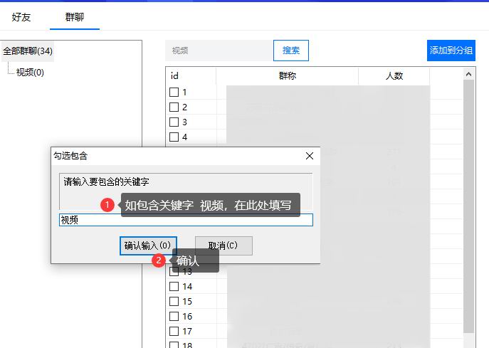 确定之后自动勾选含有关键字的微信群,如下图: