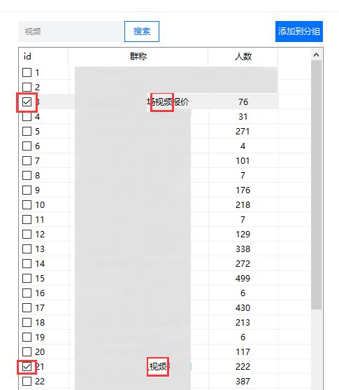 2、自动换群的时候也可以通过分组来快速勾选换群数据、换群对象;
