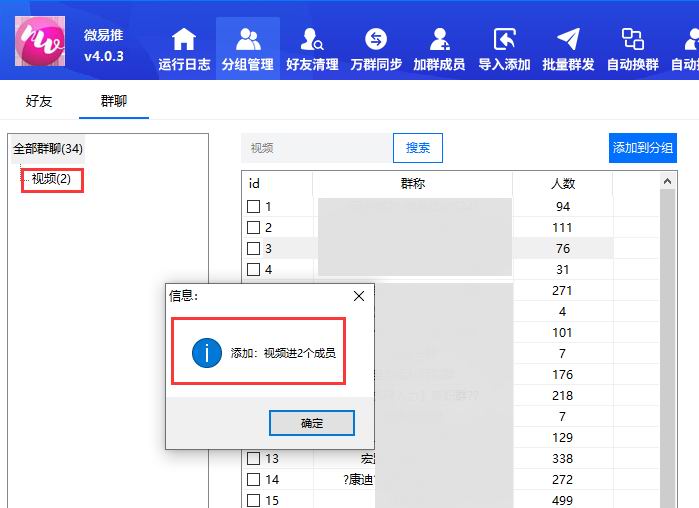 (四)、添加视频群聊分组成员成功效果