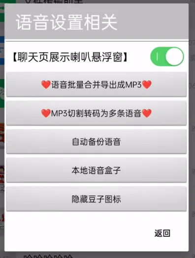 1. 开启【聊天页展示喇叭悬浮窗】,给予豆子精灵悬浮窗权限后,当你进入聊天窗口时,会出现语音悬浮窗