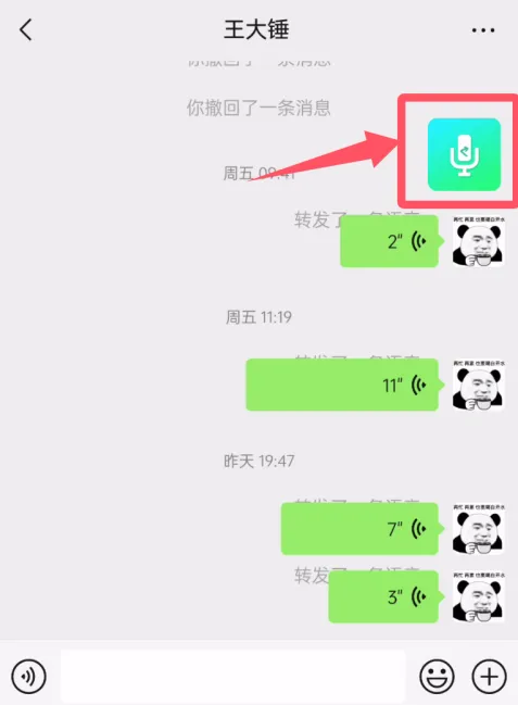 点击这个悬浮窗图标,会出现你备份过的语音条。(如果没有备份过语音,可以对感兴趣的语音条长按,备份此语音)
