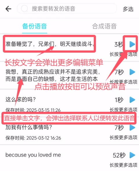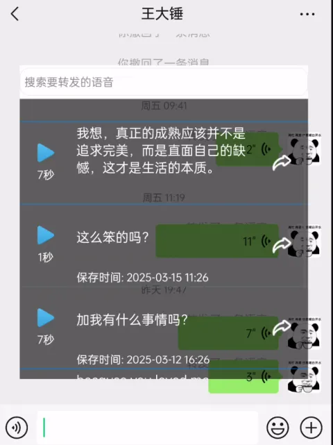 这些语音条可以随时随地再次发送。